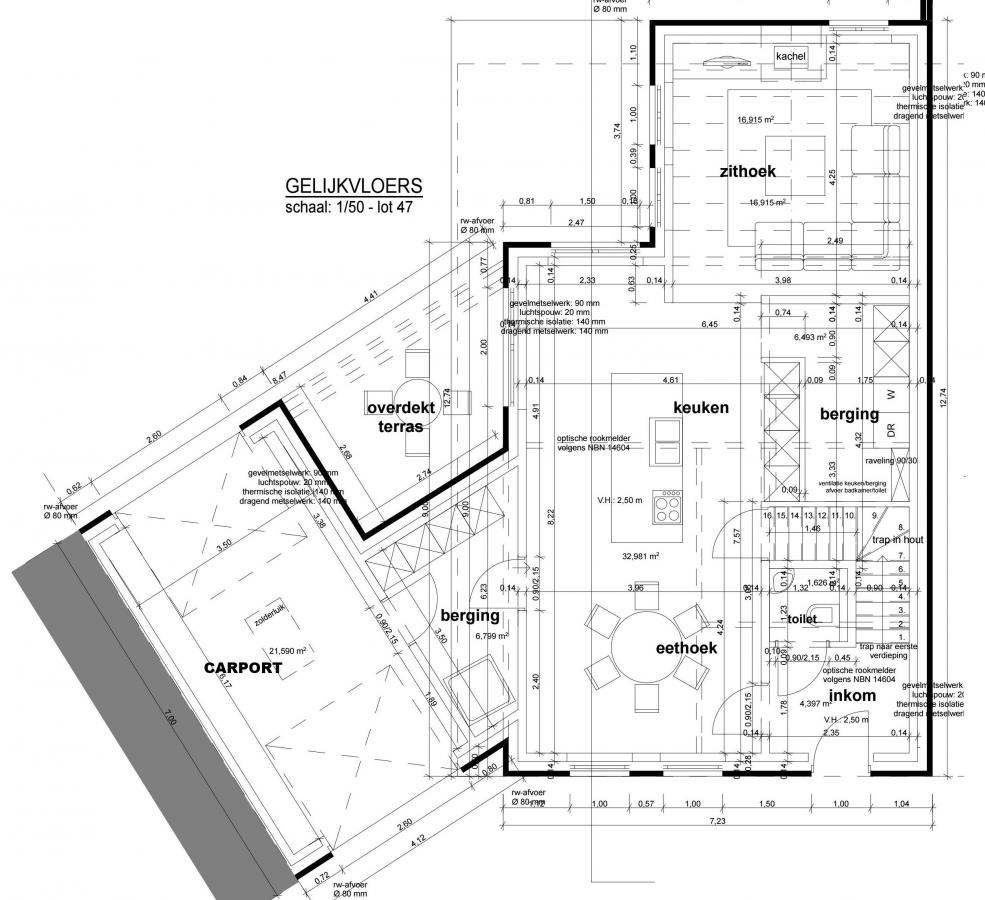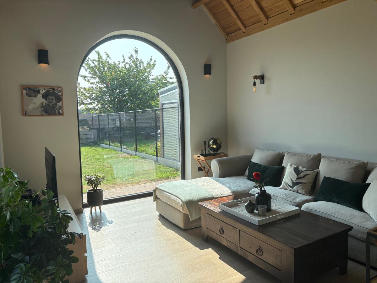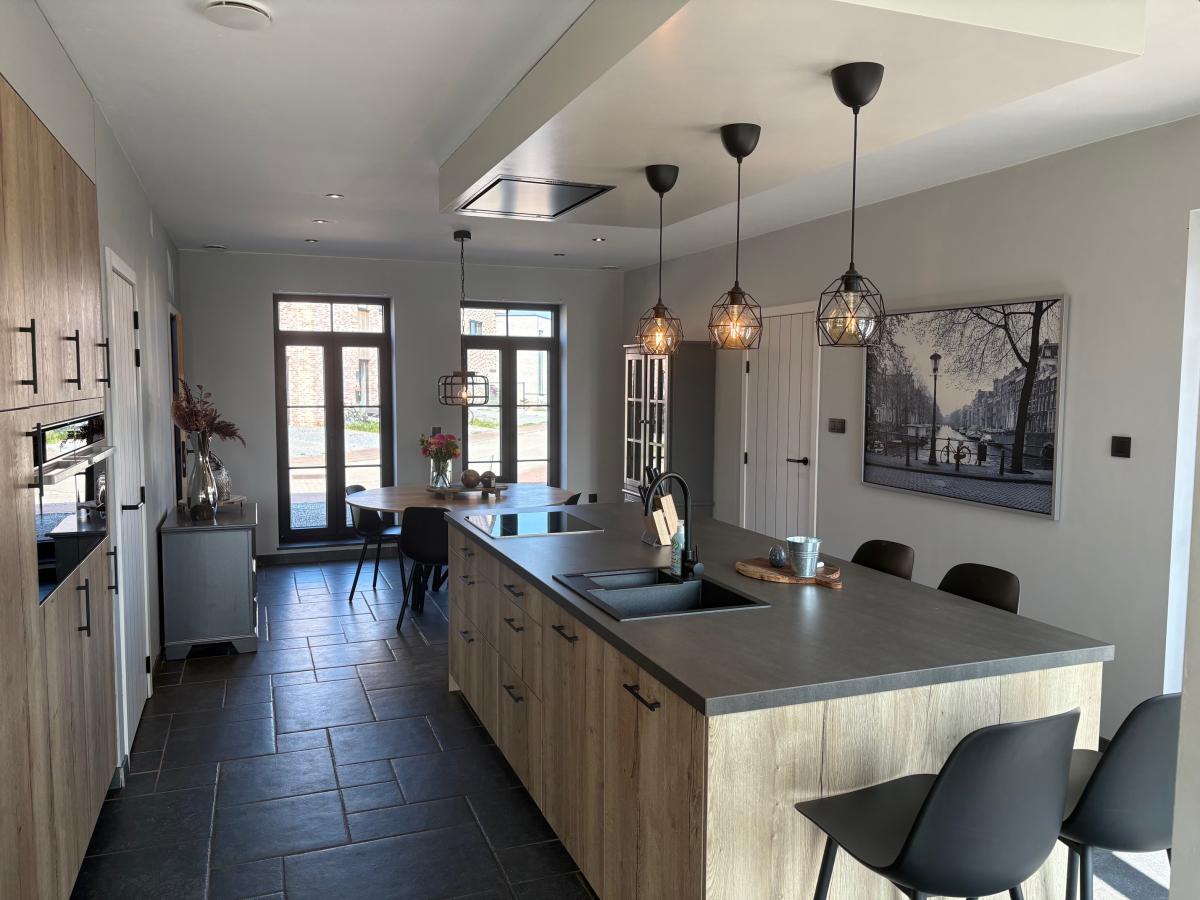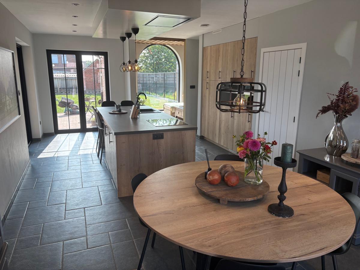 Op gelijkvloers bestaande uit inkomhal, wc, ruime woonkamer met open ingerichte open keuken, berging, aparte inkom zijkant.