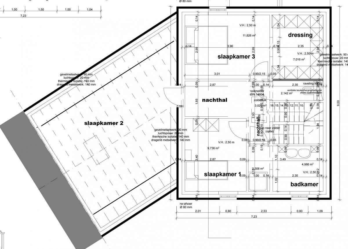 Op verd 1 bestaande uit nachthal, 3 slaapkamers (waarvan 1 met dressing ruimte), badkamer voorzien van inloopdouche, badmeubel. Aparte wc.