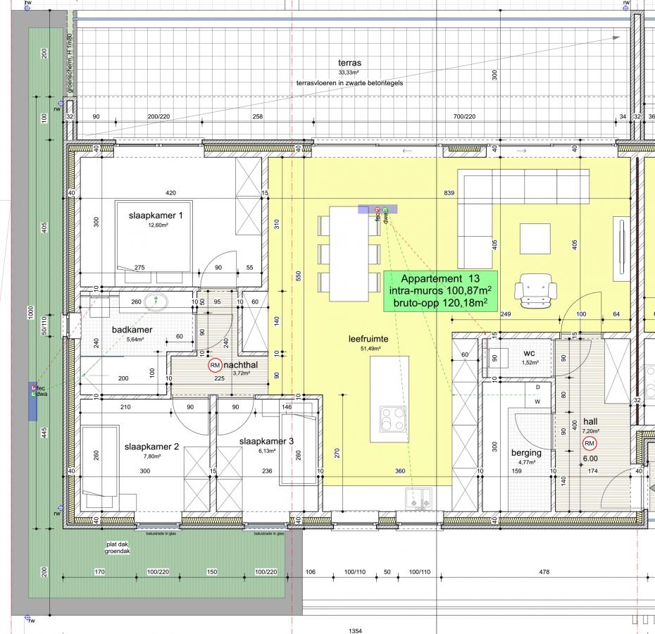 -App 13 : 120 m²(3slk) met terras van 33 m² = verkocht