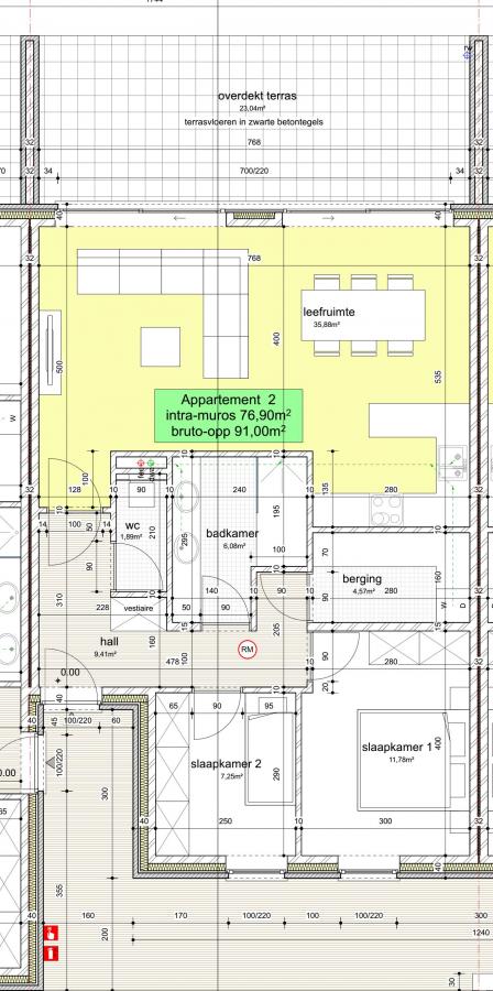 -App 2 : 91m² (2slk) met terras van 23m² = 241.000 € excl kosten