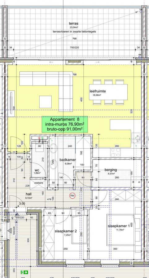 -App 8 : 91m² (2slk) met terras van 23m² = verkocht