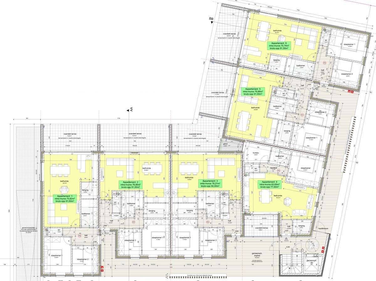 Op gelijkvloers: 6 appartementen