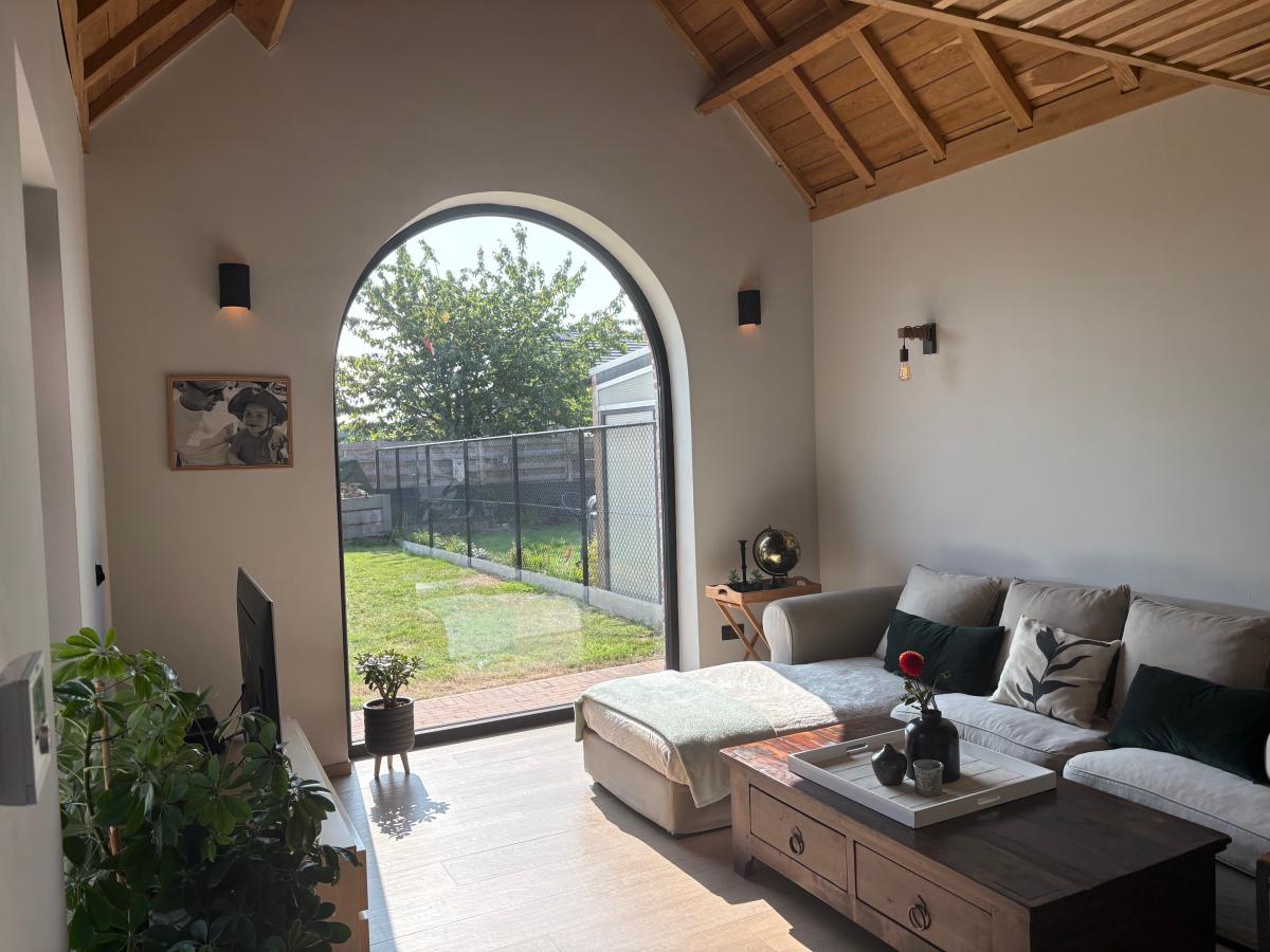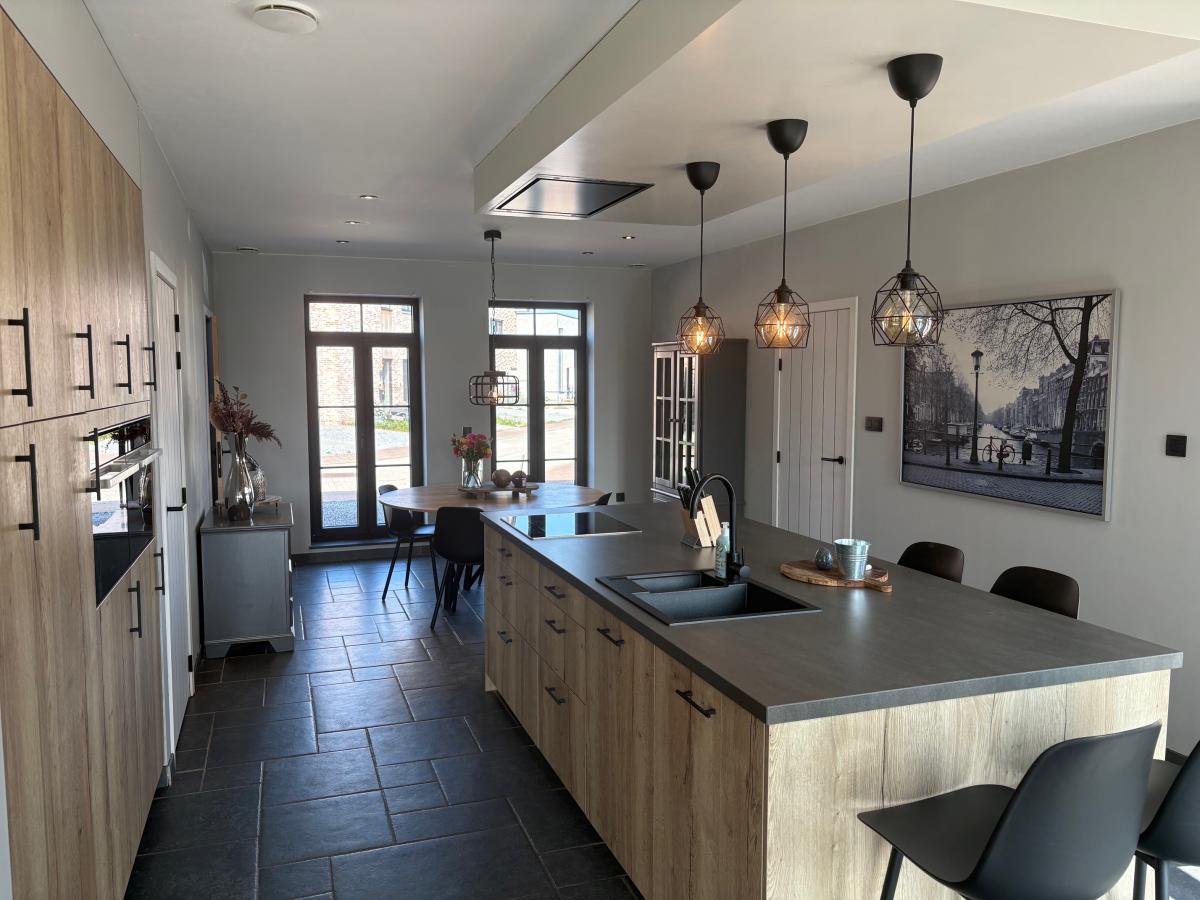 Op gelijkvloers bestaande uit inkomhal, wc, ruime woonkamer met open ingerichte open keuken, berging, aparte inkom zijkant.